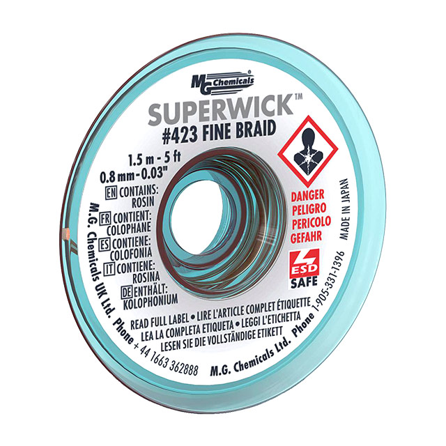 gedetailleerde beschrijving Desolder Braid/Wick Rosin, Mildly Activated (RMA), Lead Free Static Dissipative (SD) White 0.030" (0.76mm) 5' (1.524m) Kleur White