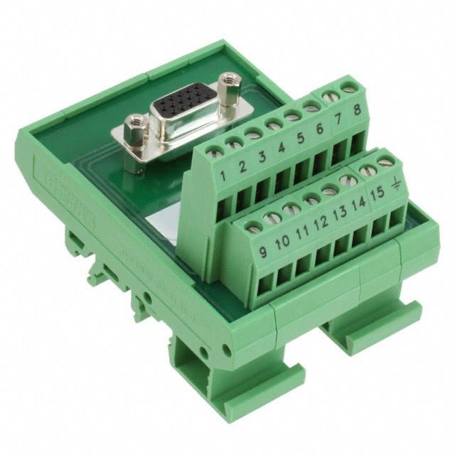 | gedetailleerde beschrijving | 15 Position Interface Module Terminal Blocks - Screw Connection To D-Sub, Female 12-24 AWG | Current Rating (Per Contact) | 1A |